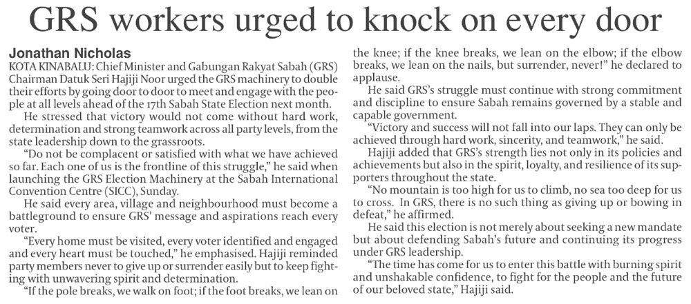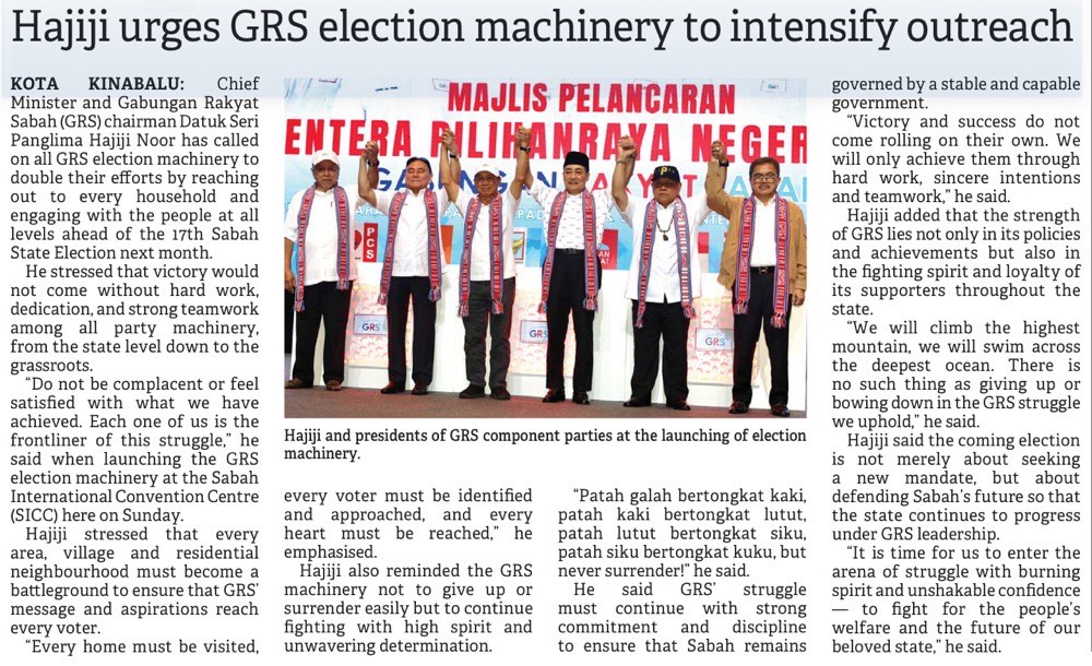 Hajiji mahu jentera GRS turun ke setiap rumah, dekati rakyat