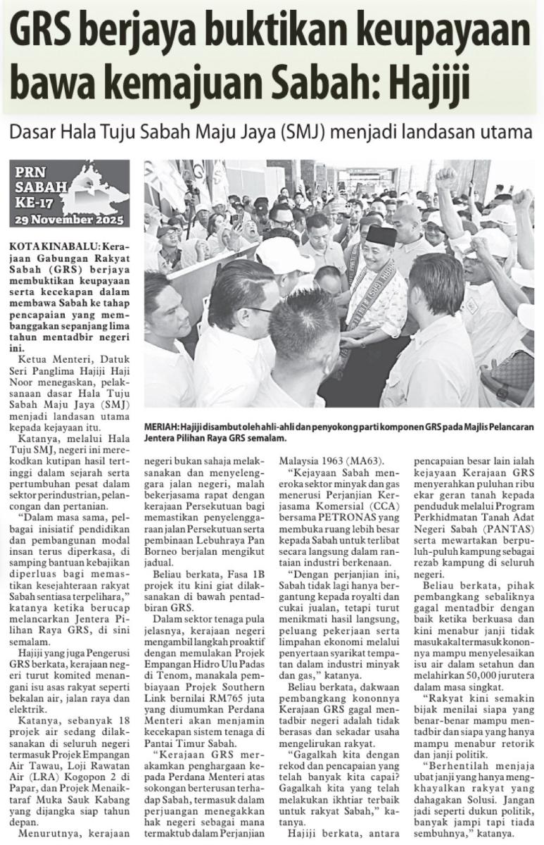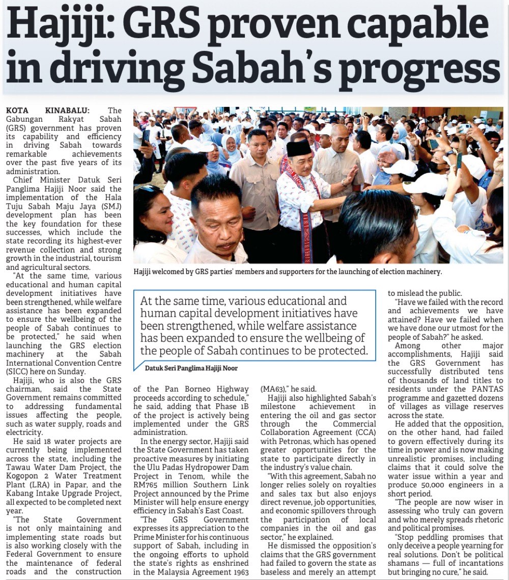 GRS berjaya buktikan keupayaan bawa kemajuan Sabah: Hajiji