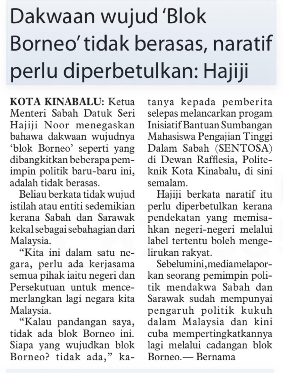 Dakwaan wujud 'Blok Borneo' tidak berasas, naratif perlu diperbetulkan: Hajiji