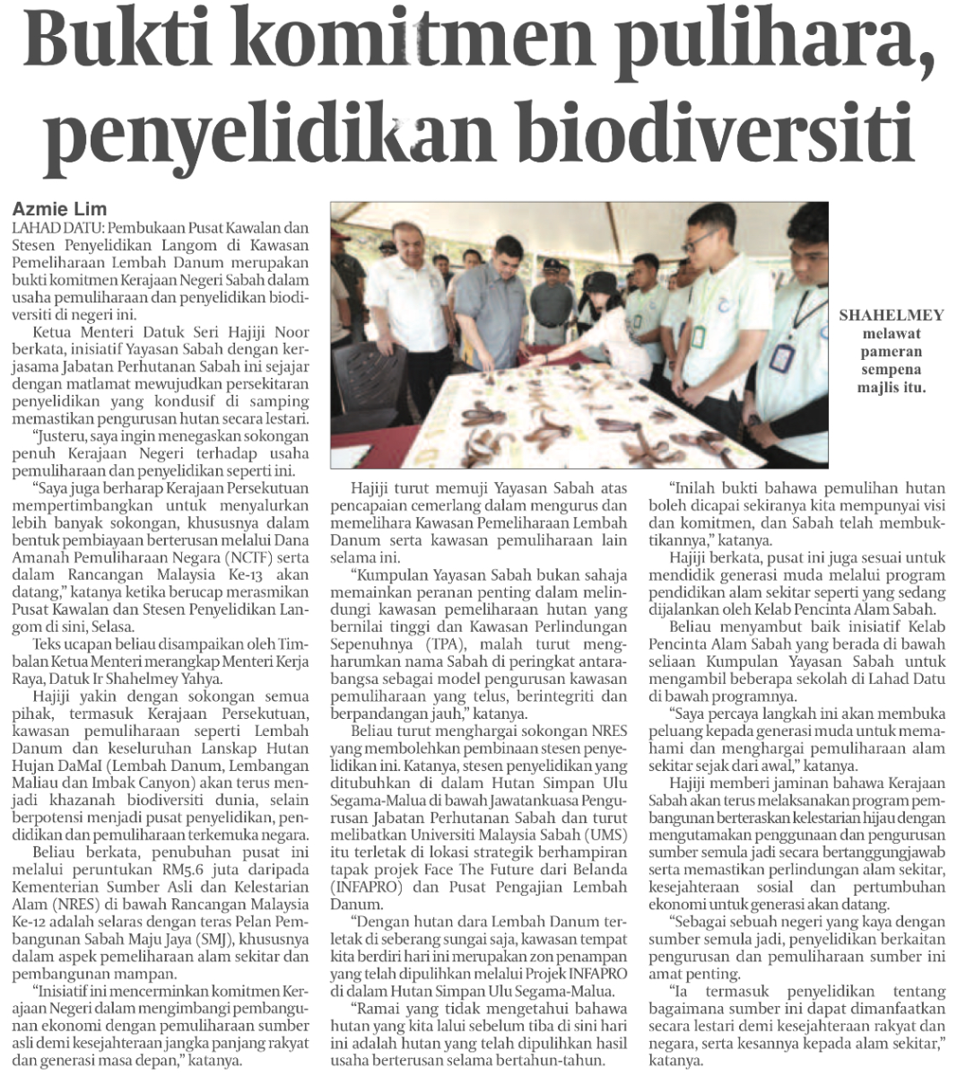 Bukti komitmen pulihara, penyelidikan biodiversiti