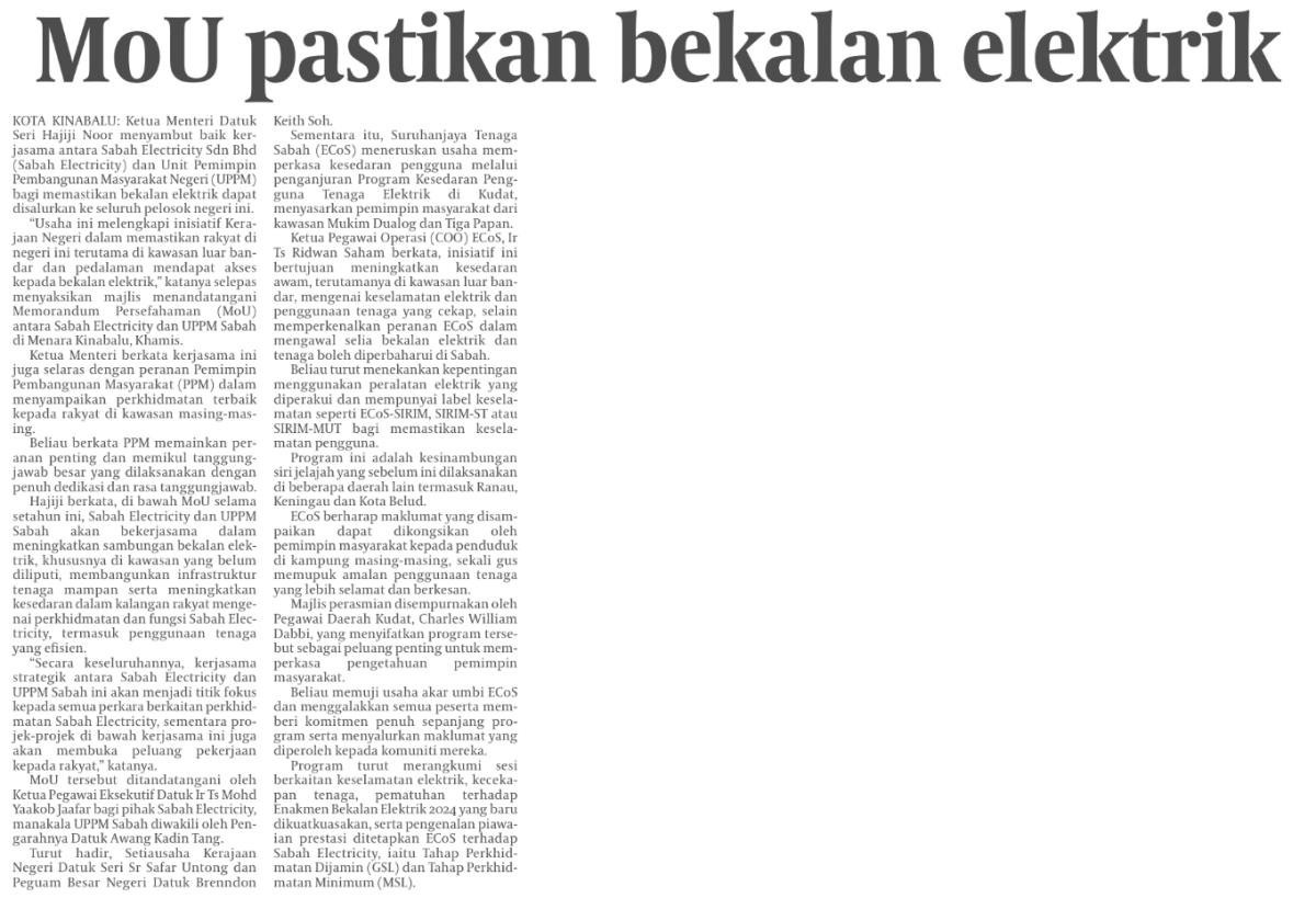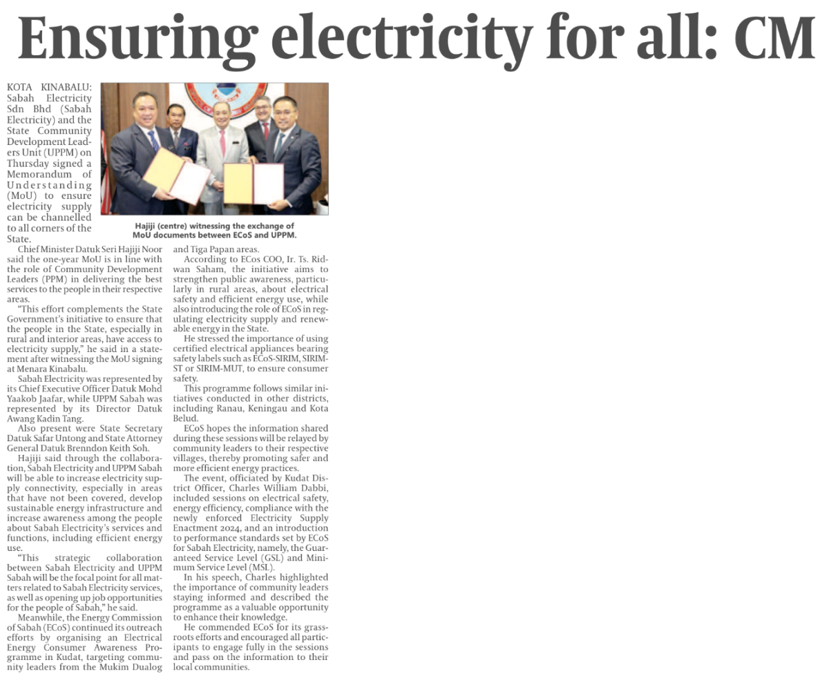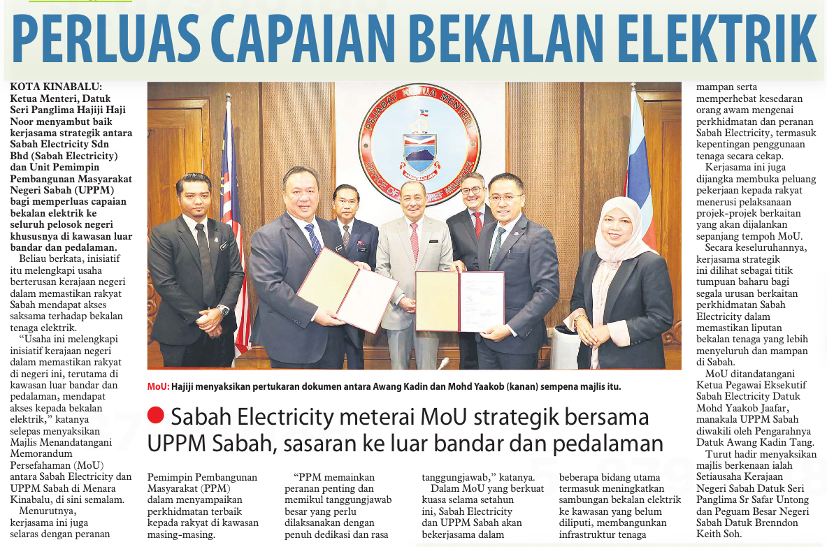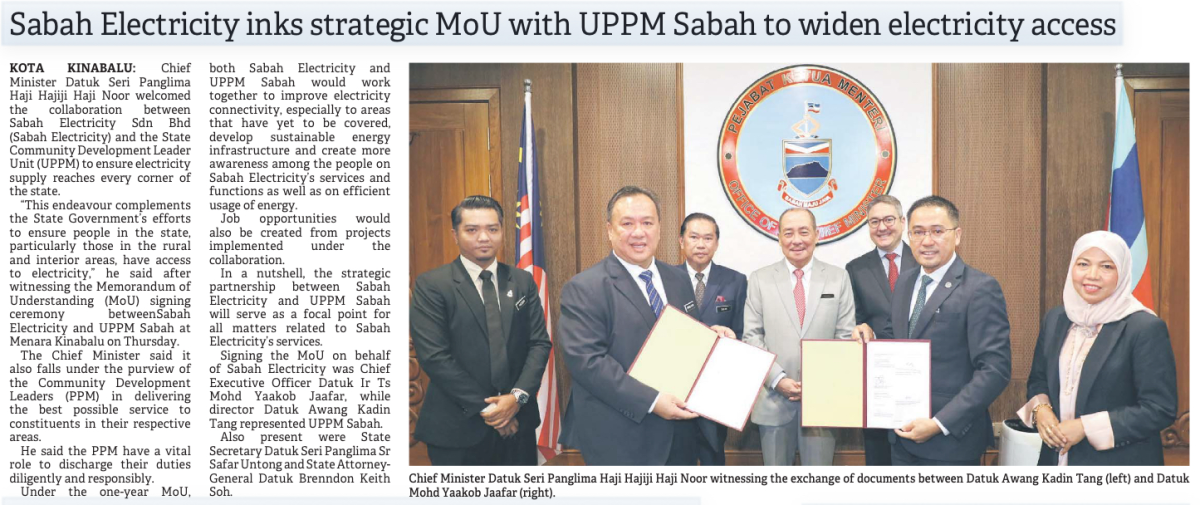 Sabah Electricity inks strategic MoU with UPPM Sabah to widen electricity access