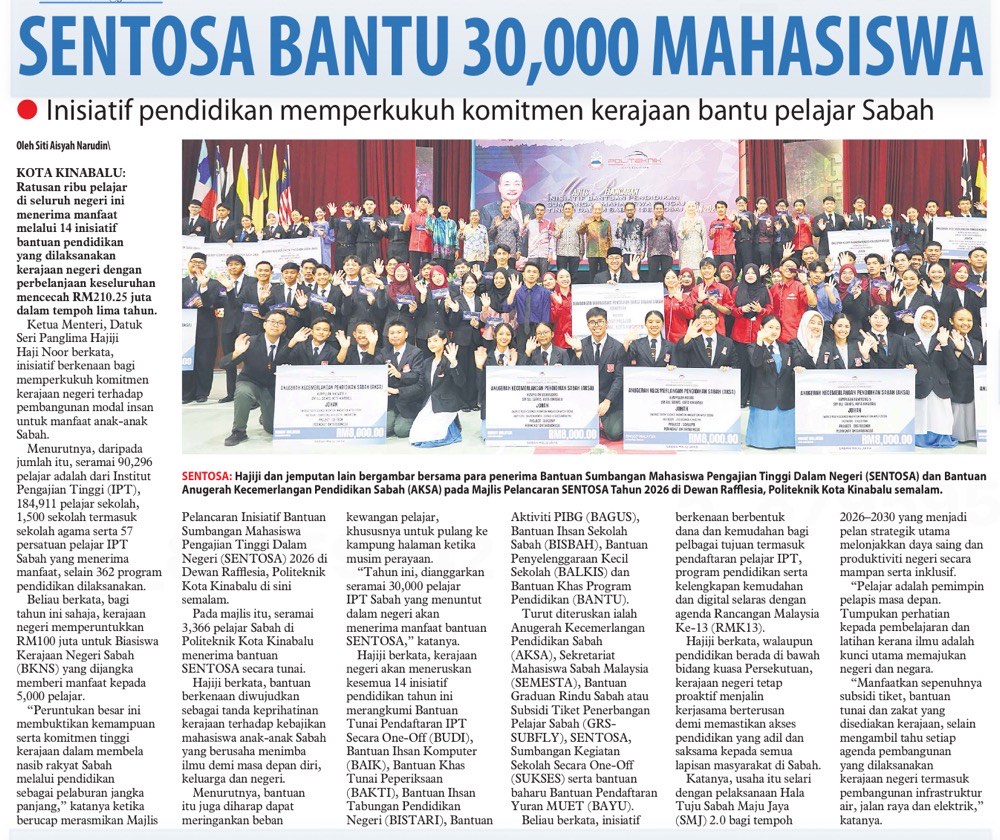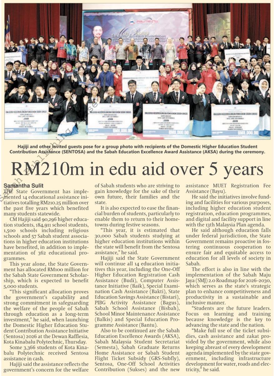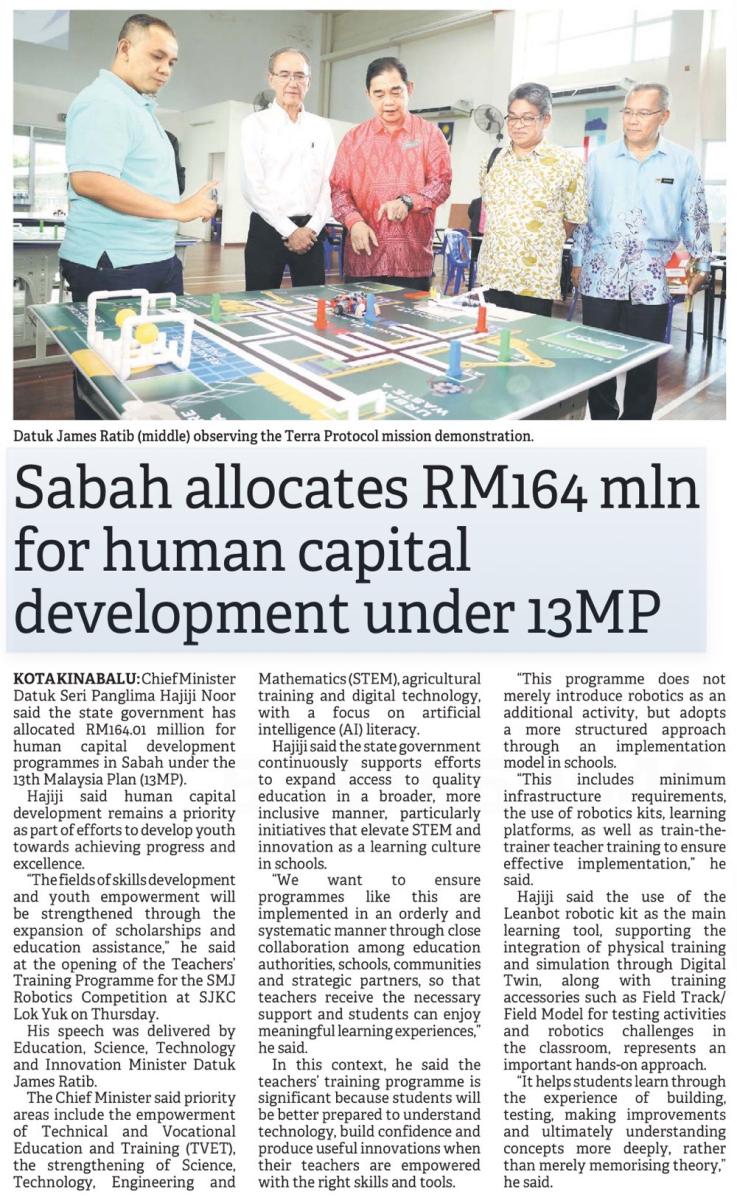 Sabah sedia peruntukan RM164 juta untuk pembangunan modal insan