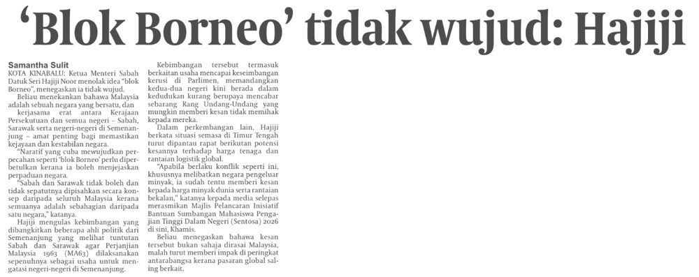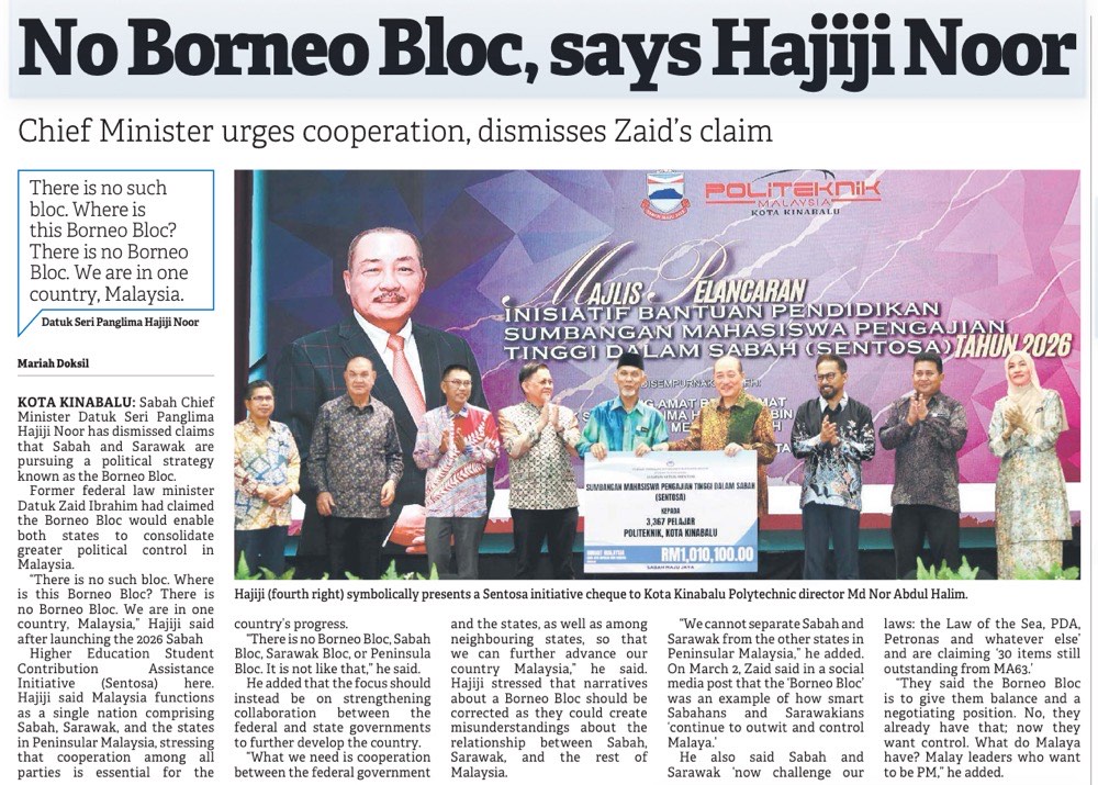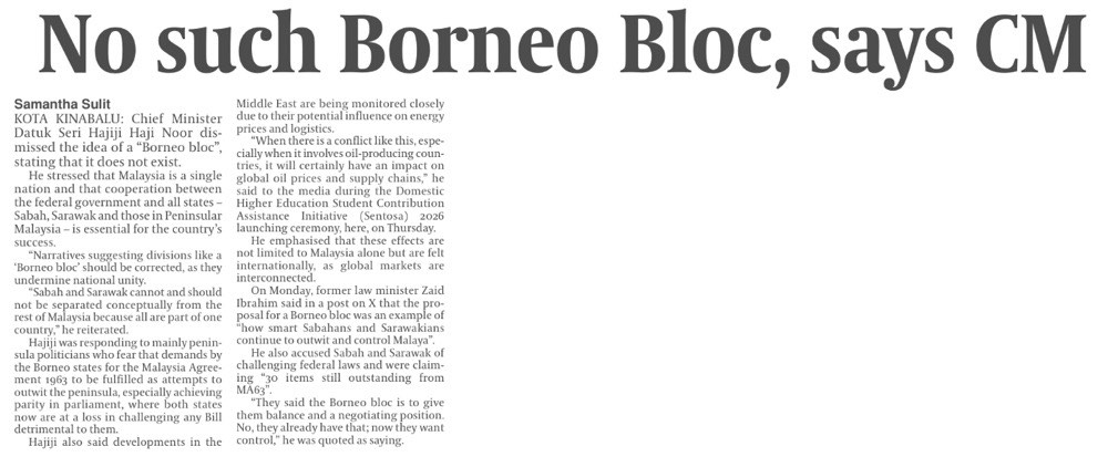 Dakwaan wujud 'Blok Borneo' tidak berasas, naratif perlu diperbetulkan: Hajiji