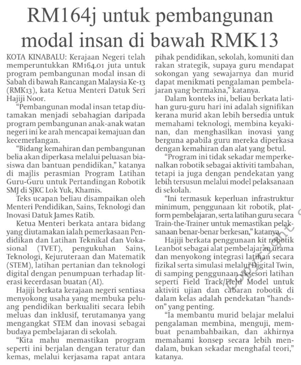 RM164j untuk pembangunan modal insan di bawah RMK13