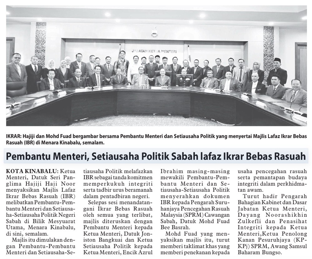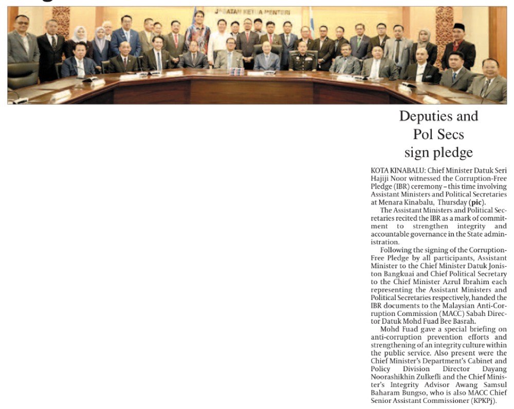 Pembantu Menteri, Setiausaha Politik Sabah lafaz ikrar bebas rasuah