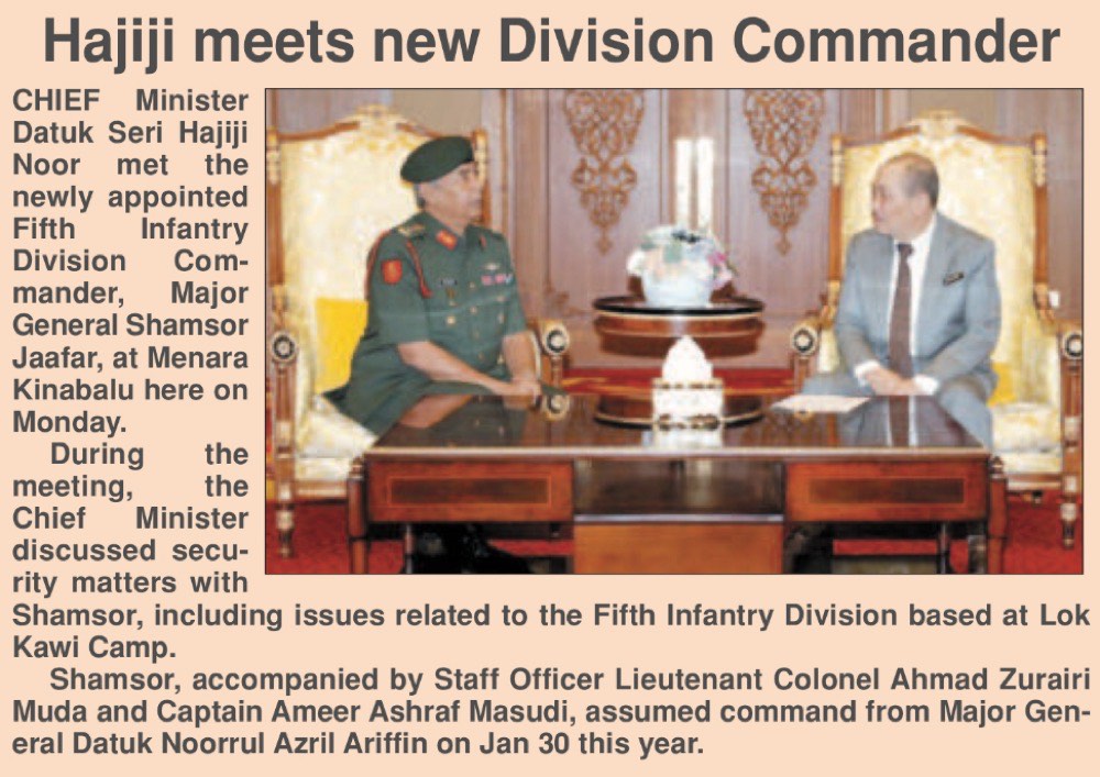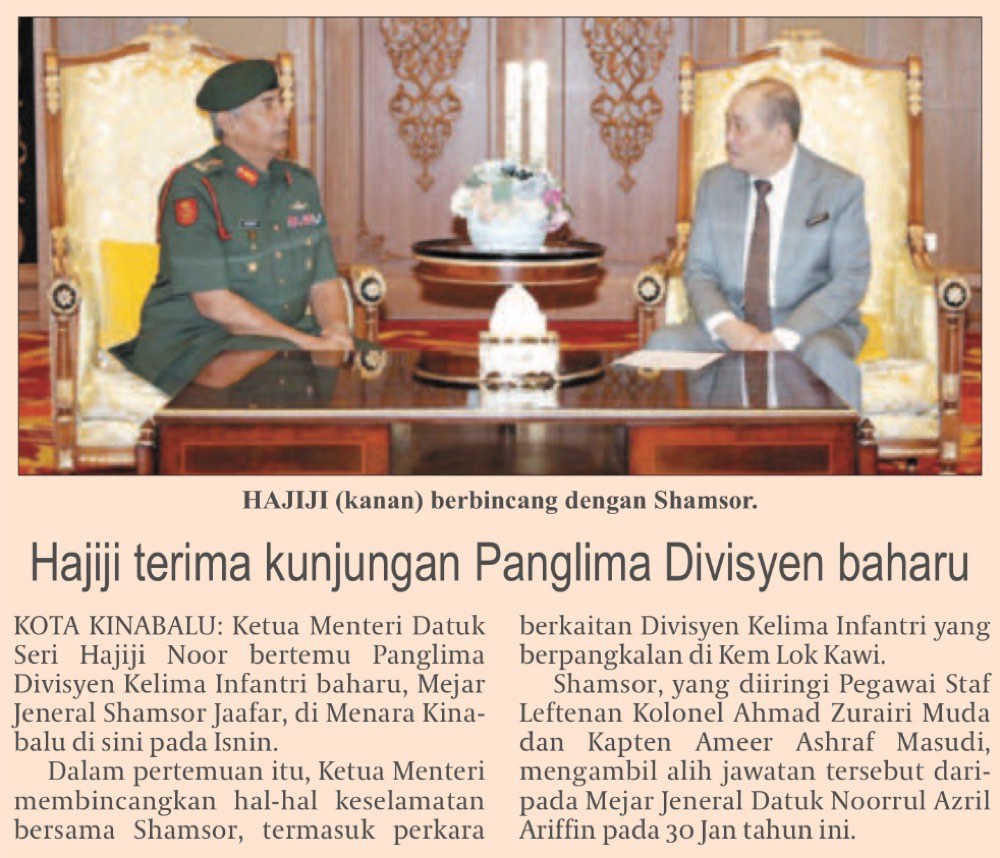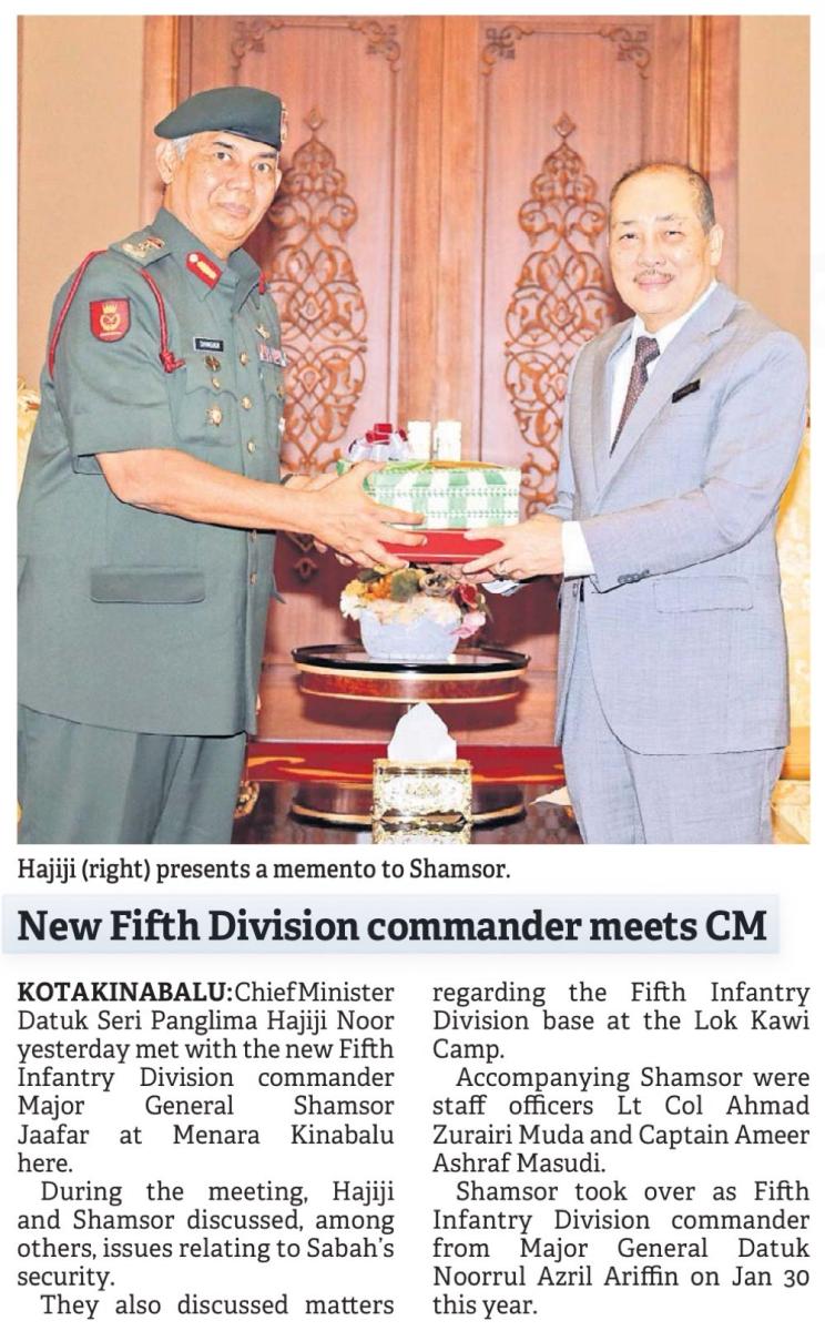 Hajiji terima kunjungan hormat Panglima Divisyen Kelima baharu