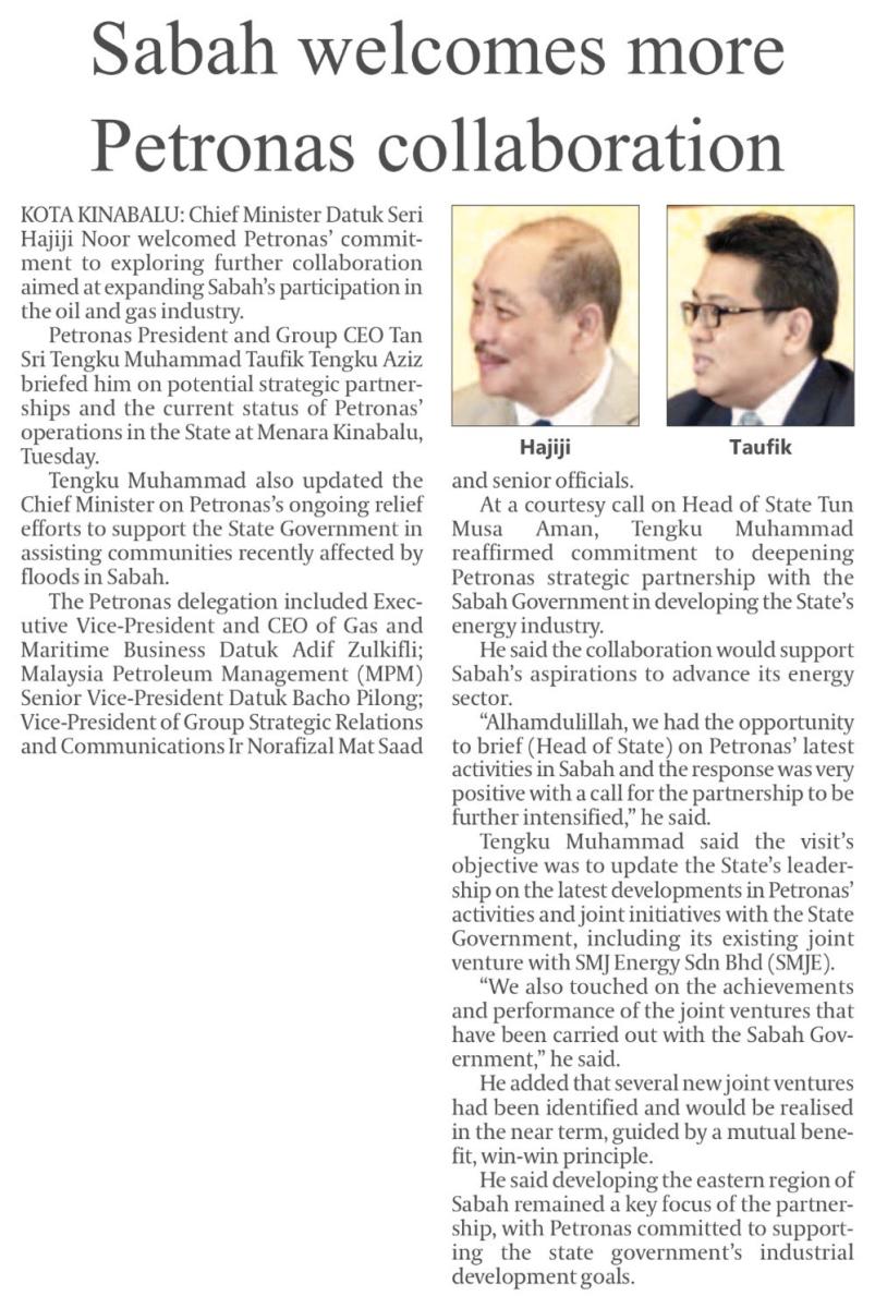 Sabah welcomes more Petronas collaboration