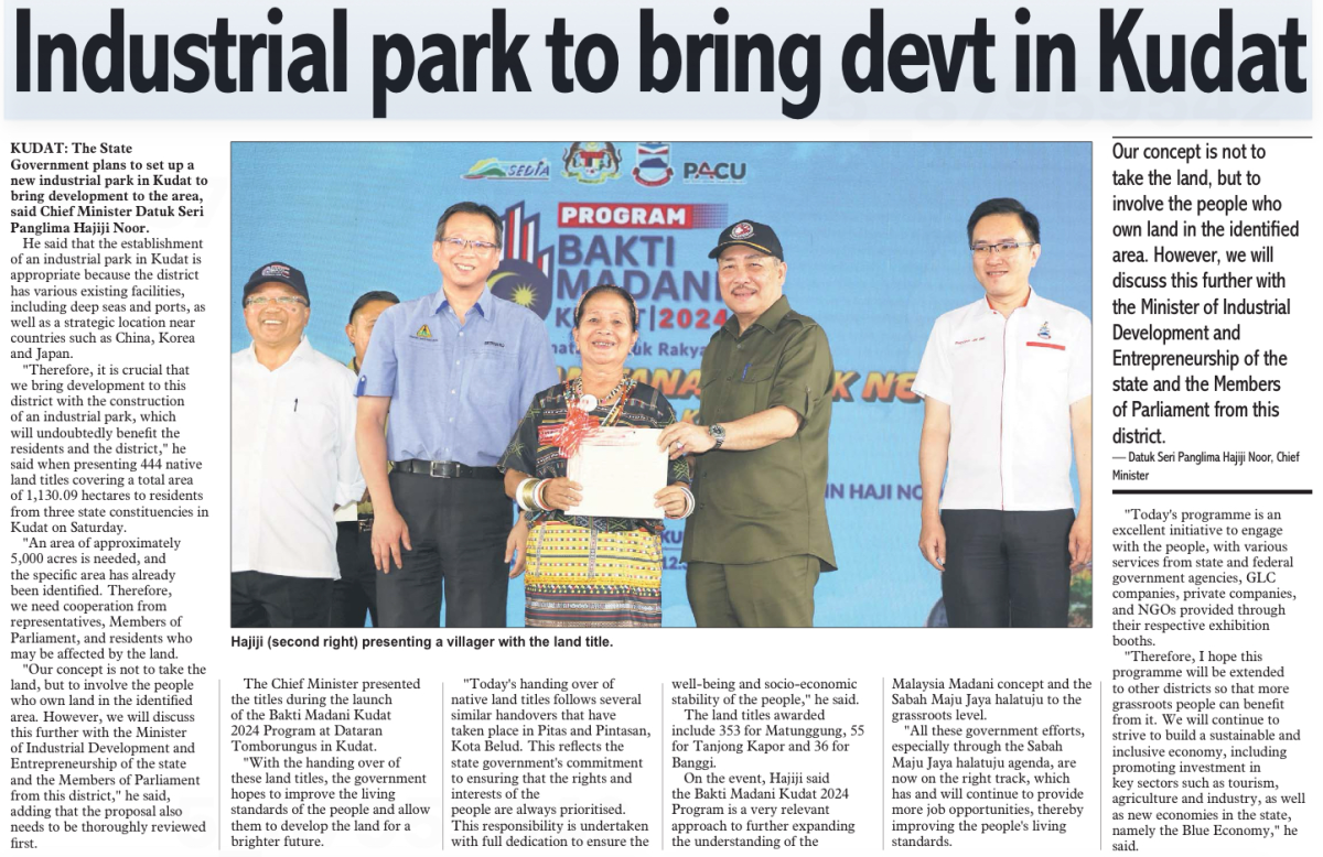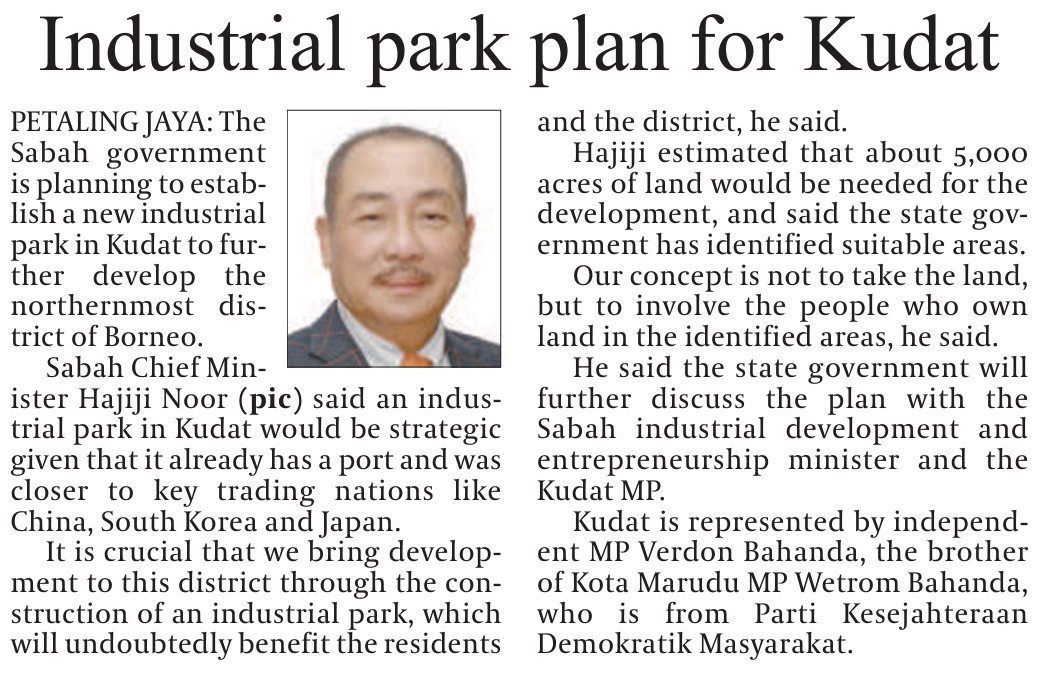 Industrial park to bring devt in Kudat