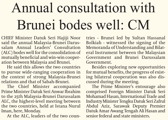 Annual consultation with Brunei bodes well: CM