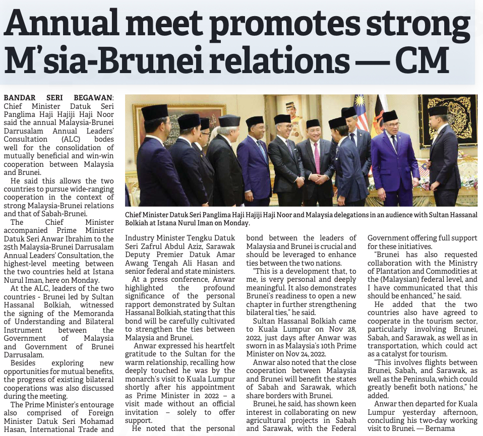 Annual meet promotes strong M'sia-Brunei relations — CM