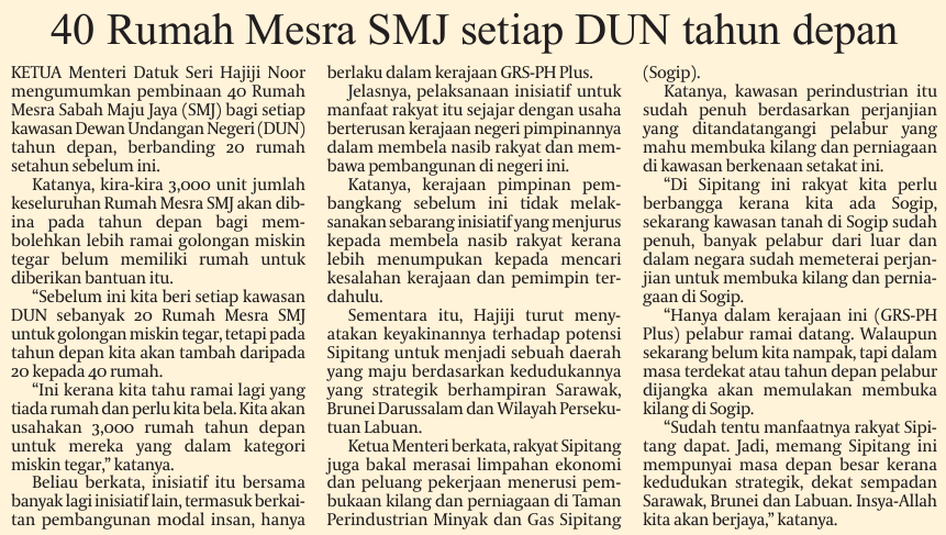 40 Rumah Mesra SMJ setiap DUN tahun depan