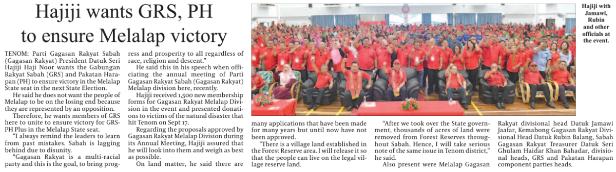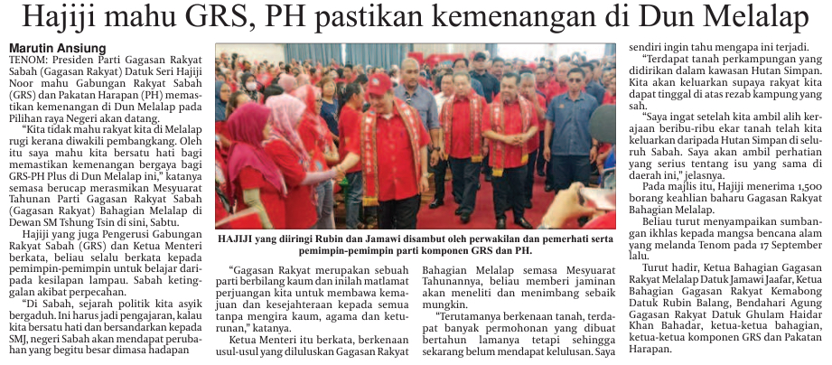 Hajiji wants GRS, PH to ensure Melalap victory