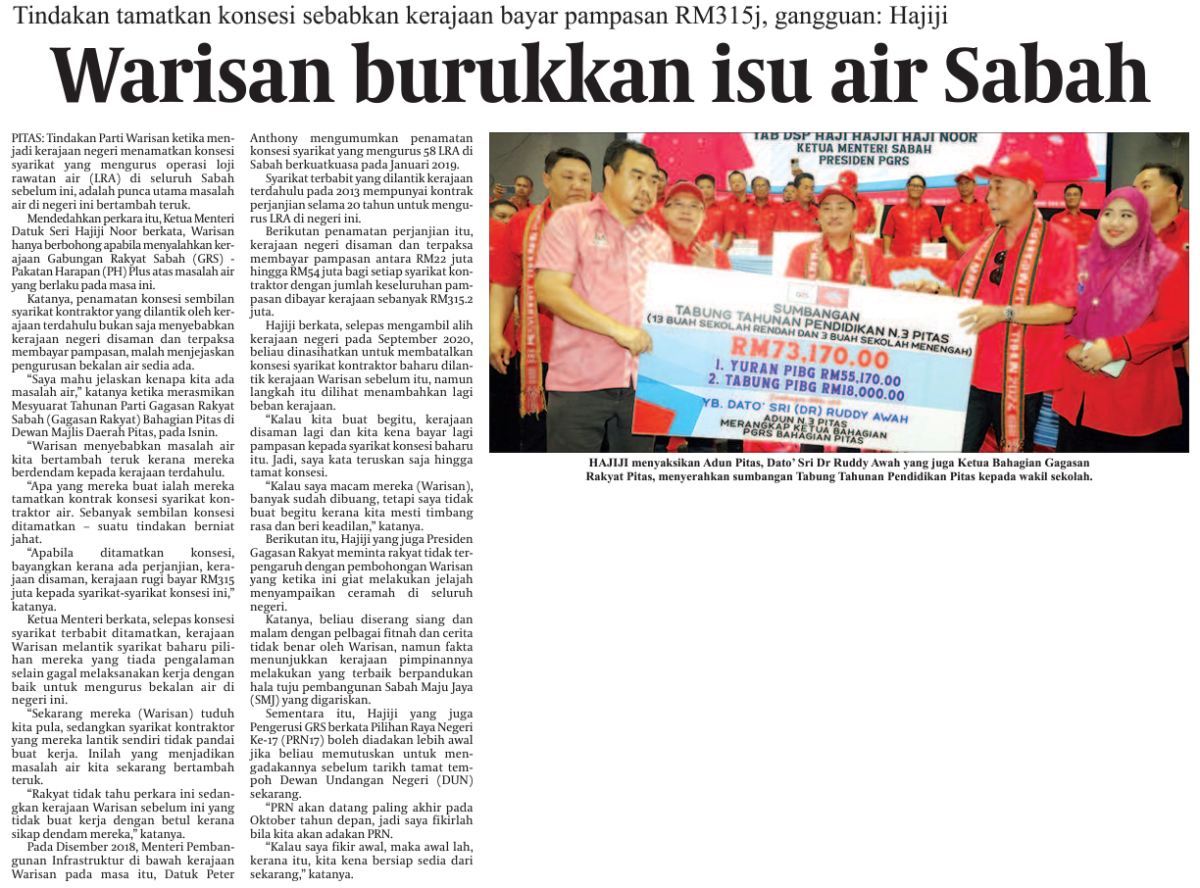 Warisan burukkan isu air Sabah