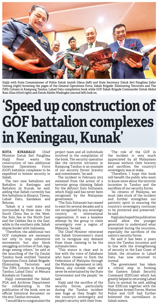 'Speed up construction of GOF battalion complexes in Keningau, Kunak'