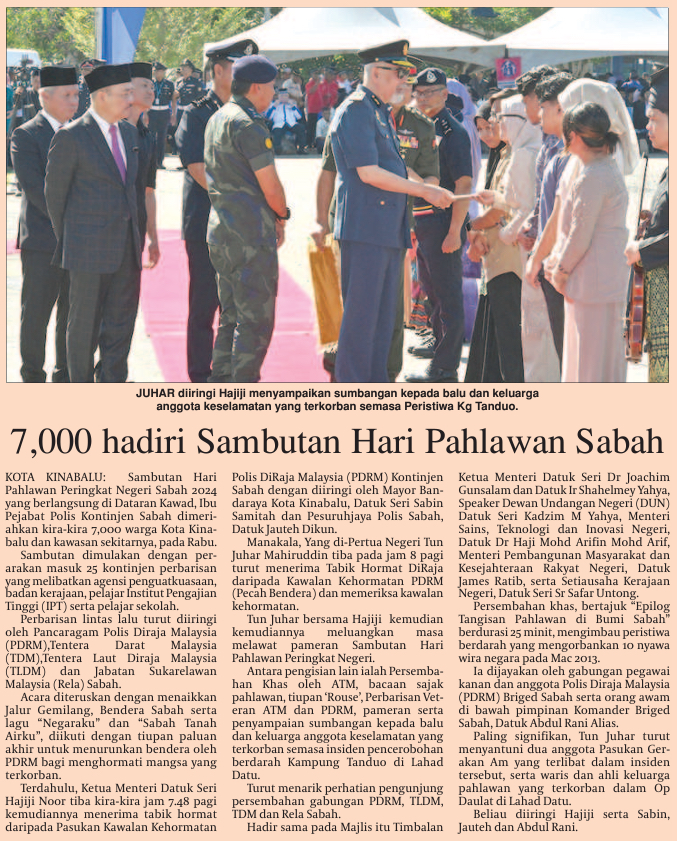 7,000 hadiri Sambutan Hari Pahlawan Sabah