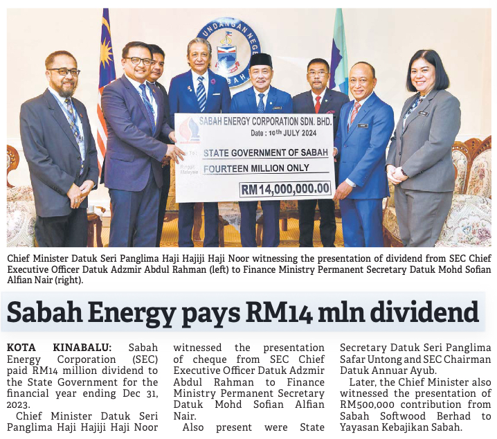 Sabah receives RM14m dividend from SEC