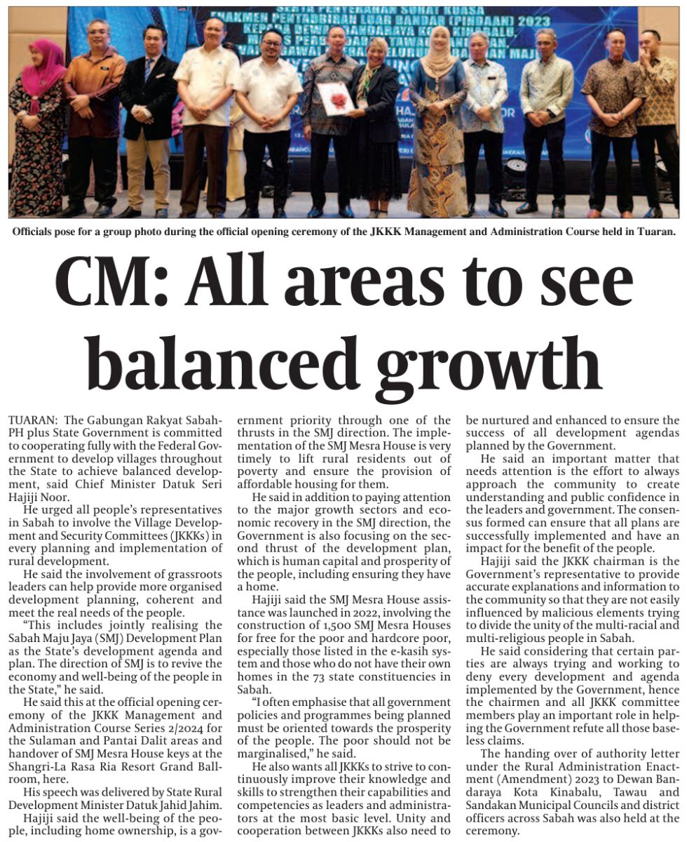 Sabah to cooperate with Putrajaya to develop villages