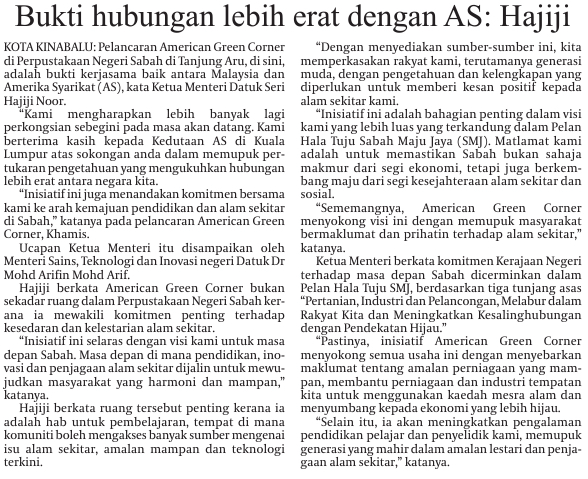 American Green Corner signifies closer US ties: Hajiji