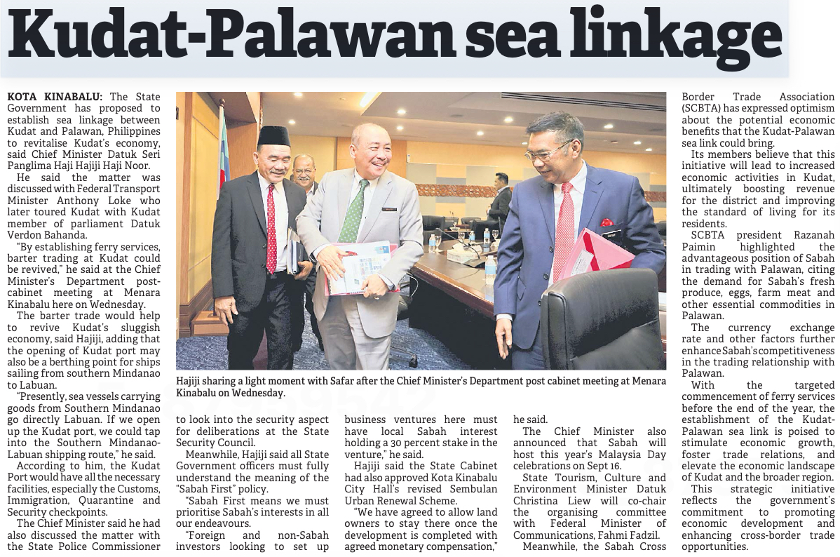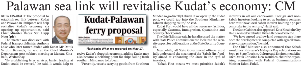 Palawan sea link will revitalise Kudat's economy: CM