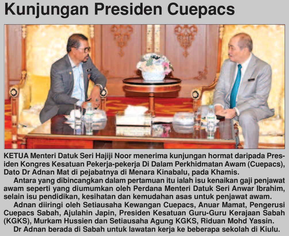 Hajiji terima kunjungan Presiden CUEPACS