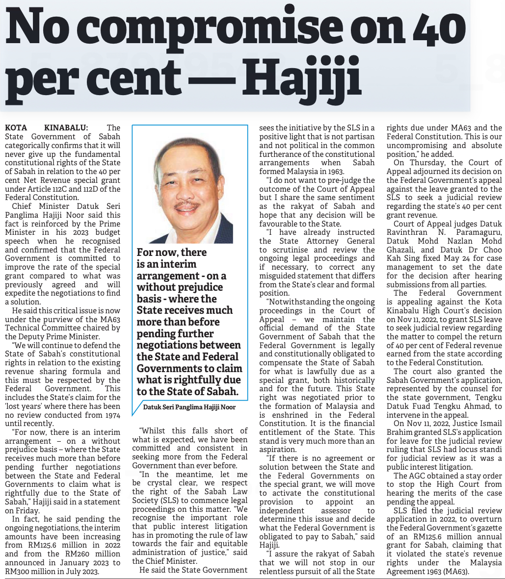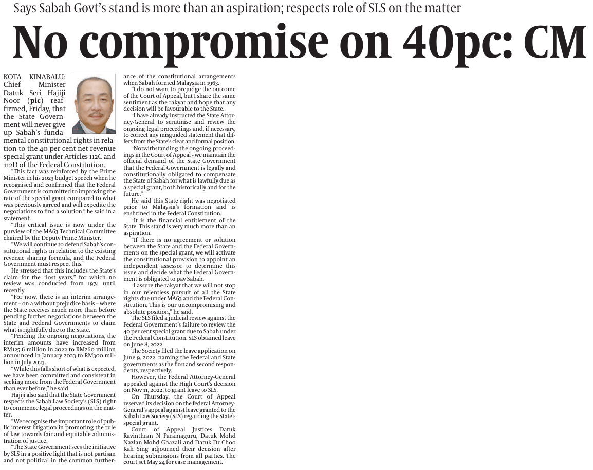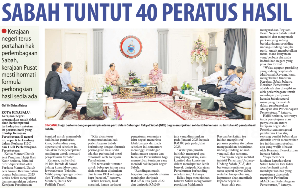 Sabah tuntut 40 peratus hasil