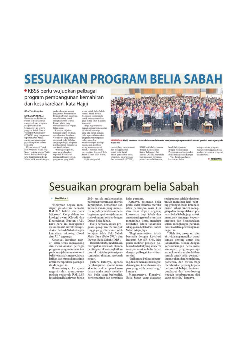 Sesuaikan program Belia Sabah