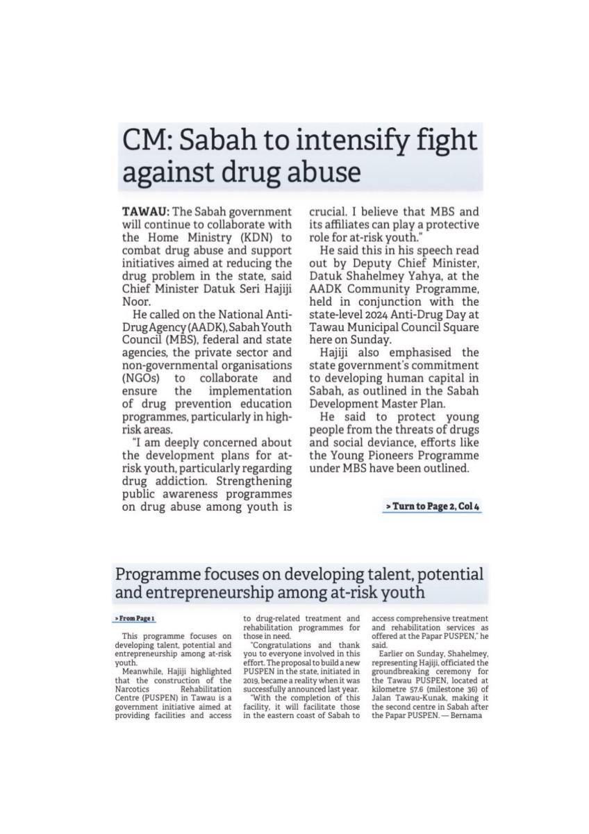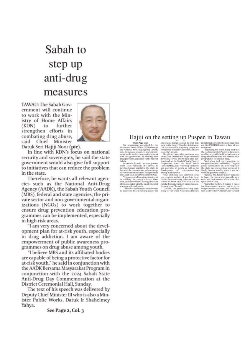 CM: Sabah to intensify fight against drug abuse