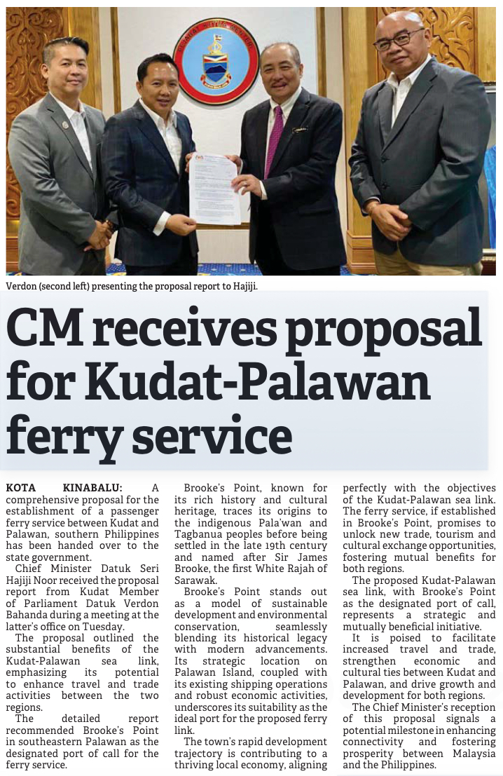 CM receives proposal for Kudat-Palawan ferry service