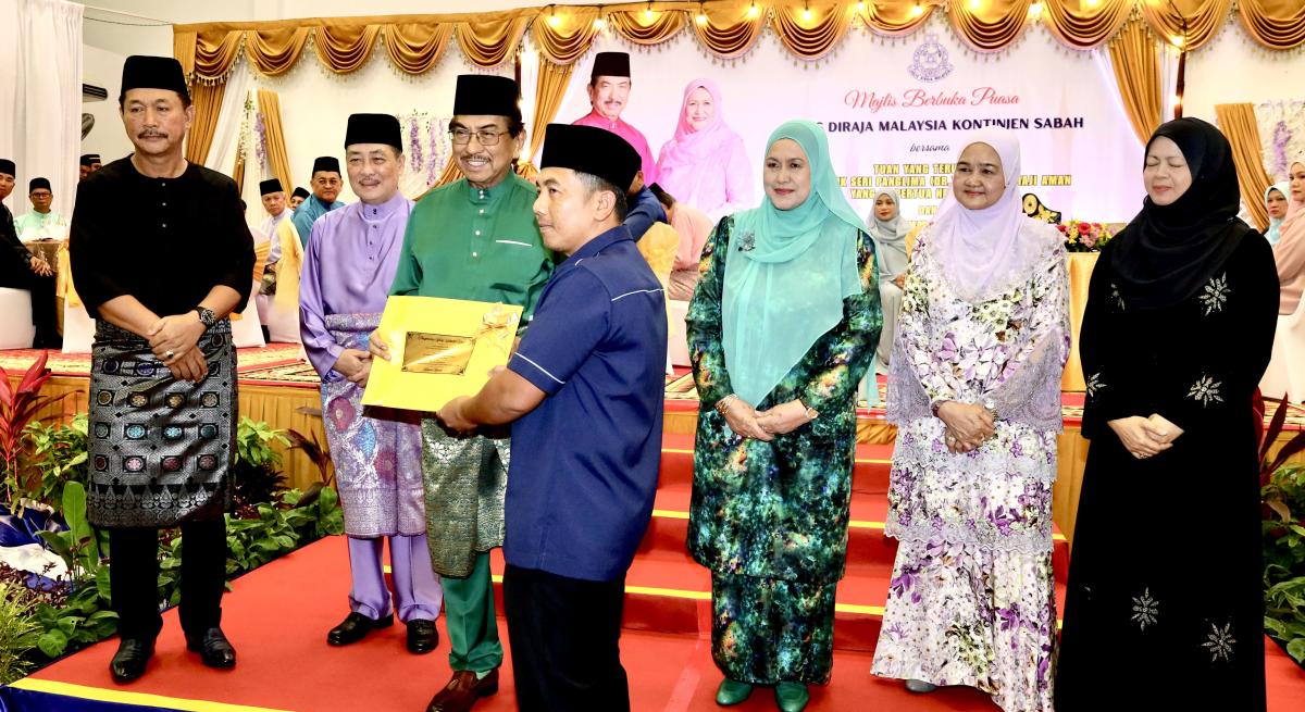 KOTA KINABALU: Yang di-Pertua Negeri Sabah, Tun Datuk Seri Panglima (Dr.) Musa Haji Aman bersama Toh Puan Datin Seri Panglima Datuk Hajah Faridah Haji Tussin serta Ketua Menteri, Datuk Seri Panglima Haji Hajiji Haji Noor dan isteri, Datin Seri Panglima Datuk Hajah Juliah Salag menghadiri Majlis Berbuka Puasa Polis Diraja Malaysia (PDRM) Kontinjen Sabah di Dewan Serbaguna, Ibu Pejabat Polis Daerah (IPD) Kota Kinabalu, di sini pada Rabu.