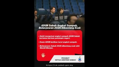 Adun Sabah Angkat Sumpah, belanjawan 2026 dibentang esok